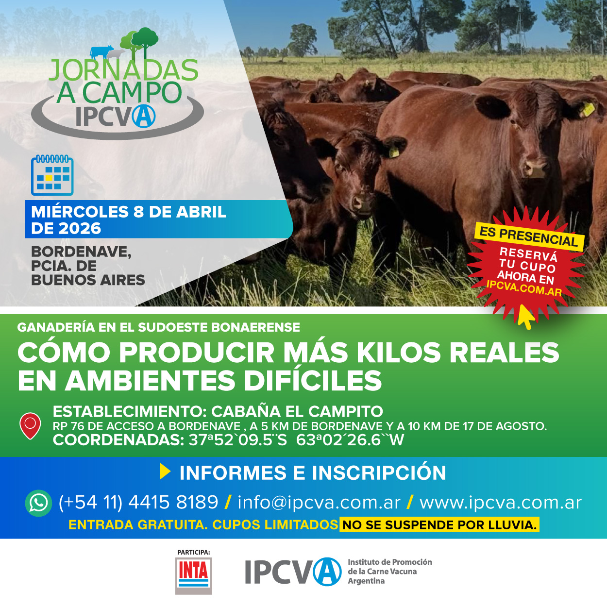 “Cómo producir más kilos reales en ambientes difíciles”. Será el 8 de Abril con entrada libre y gratuita pero cupos limitados....